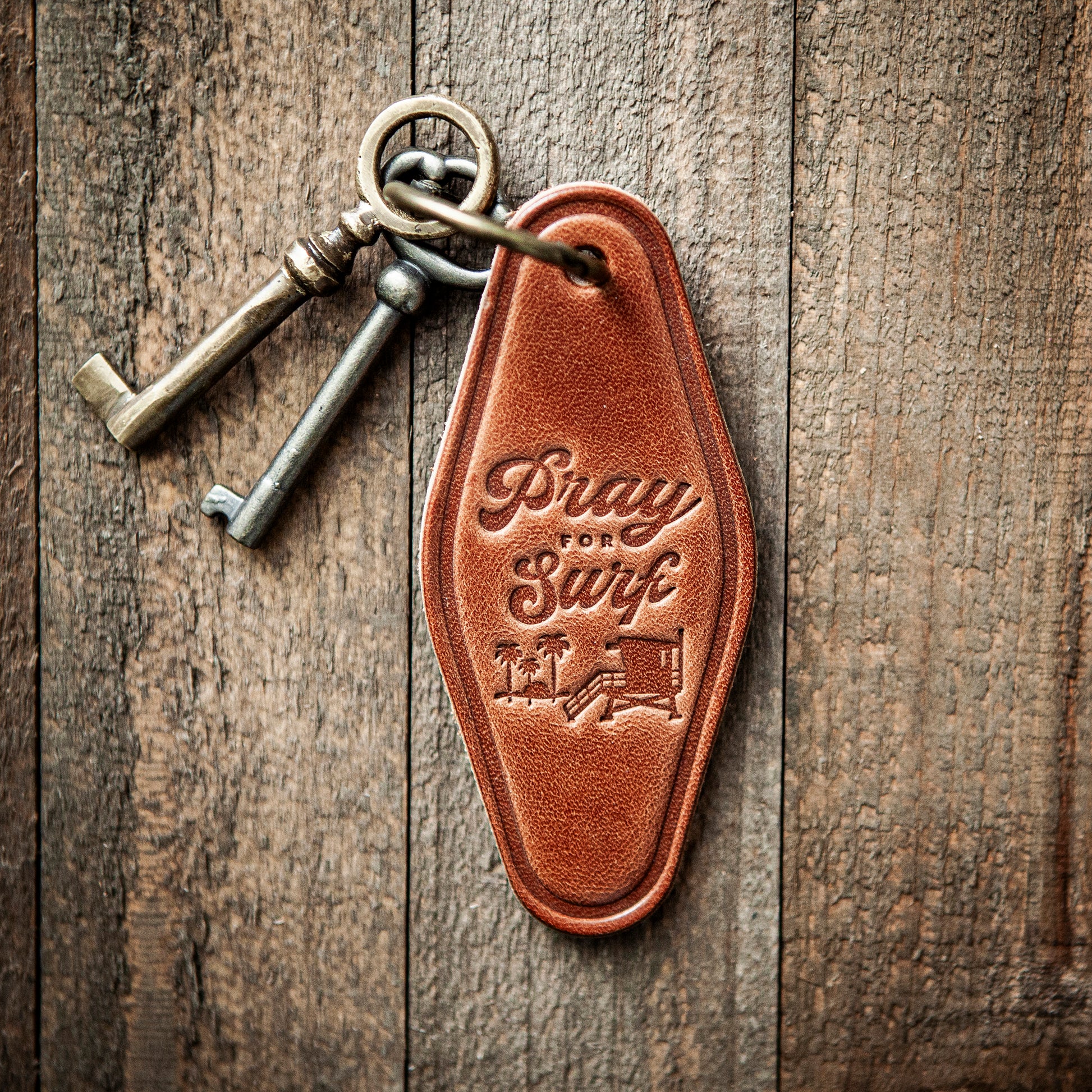 Unique and personalized gift! Our leather keychains are cut and pressed by hand from some of the thickest and finest harness leather available, and patina beautifully as they age. We have many more styles planned for the near future, so check back soon and often! Need custom branding or something special for large order gift baskets? Reach out today!