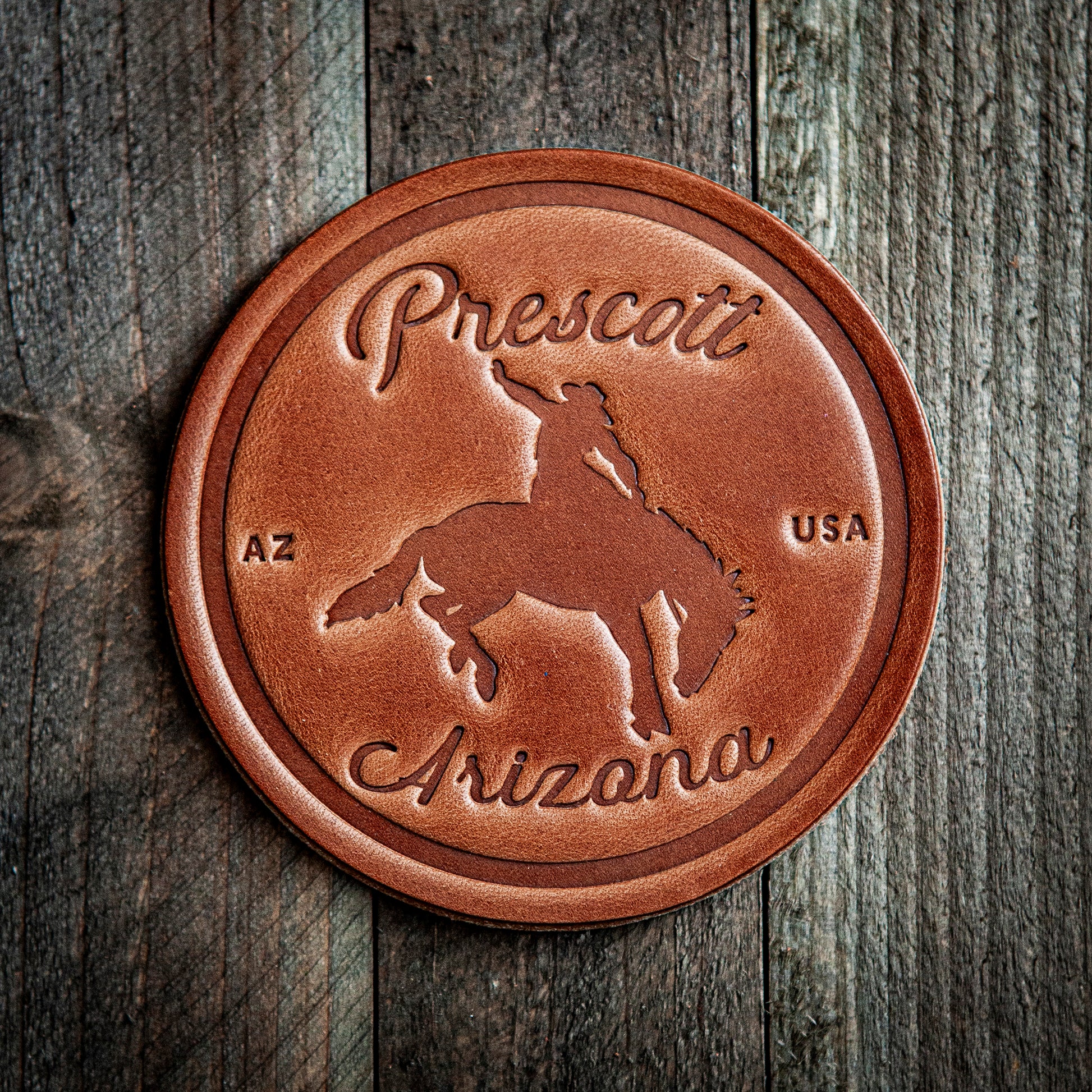 The perfect unique and surprising gift item! Our leather coasters are cut and pressed by hand from some of the thickest and finest harness leather available. They patina beautifully as they age. Mix and match a variety of styles to make a classic set of coasters that really says, "I picked these out just for you!"