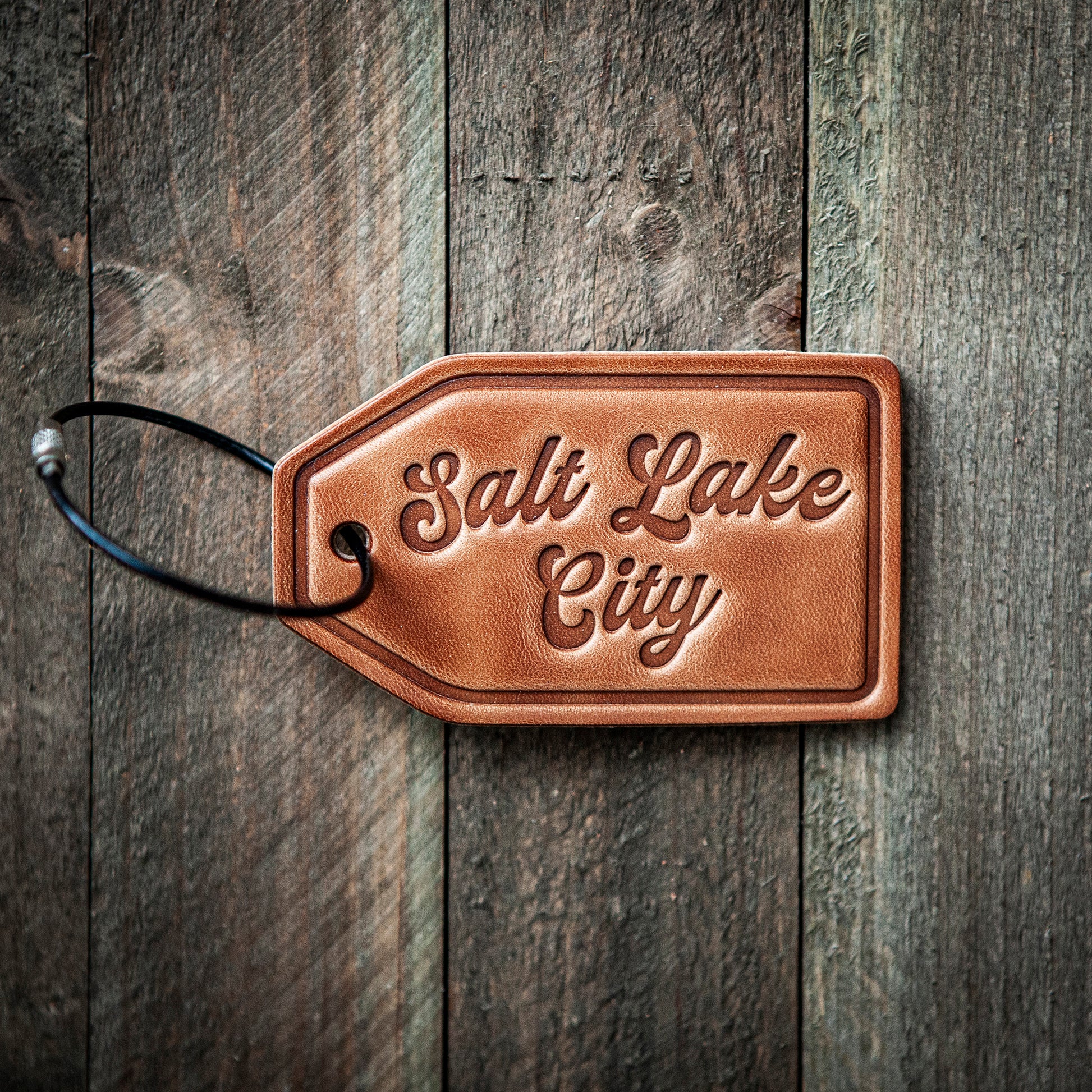 Unique and personalized gift item! Our leather luggage tags are cut and pressed by hand from some of the thickest and finest harness leather available, and patina beautifully as they age.